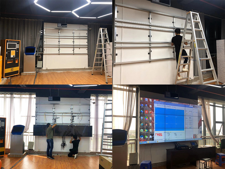 其實(shí)懂行的人就知道,壁掛式支架看起來是很簡單,但對(duì)技術(shù)人員而言卻是很大的考驗(yàn),因?yàn)楸趻焓降陌惭b方式空間極小,沒有足夠的空間給你去調(diào)整屏幕的前后位置,而要達(dá)到整齊劃一的屏幕安裝效果,需要技術(shù)人員的專業(yè)技巧和極大的耐心。信弘公司做事準(zhǔn)則是每每安裝的一套拼接屏都要把它打造成該行業(yè)的樣板工程。